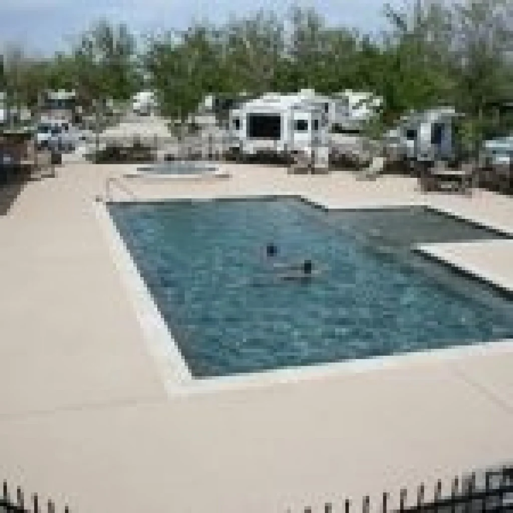 Advanced RV Park sits 12 miles south of Downtown Houston in Pearland, Texas. The gated community features extra-large concrete pads and a heated swimming pool.