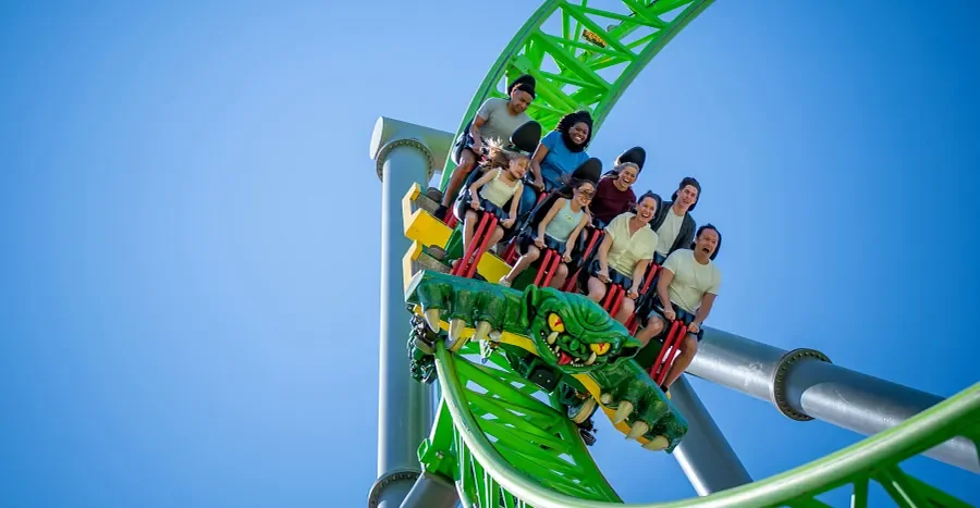 On-site recreation includes the swimming pool and playground. The primary recreational draw is adjacent Adventureland Park, which features over 100 rides, shows, and attractions.