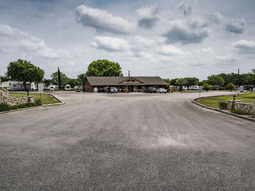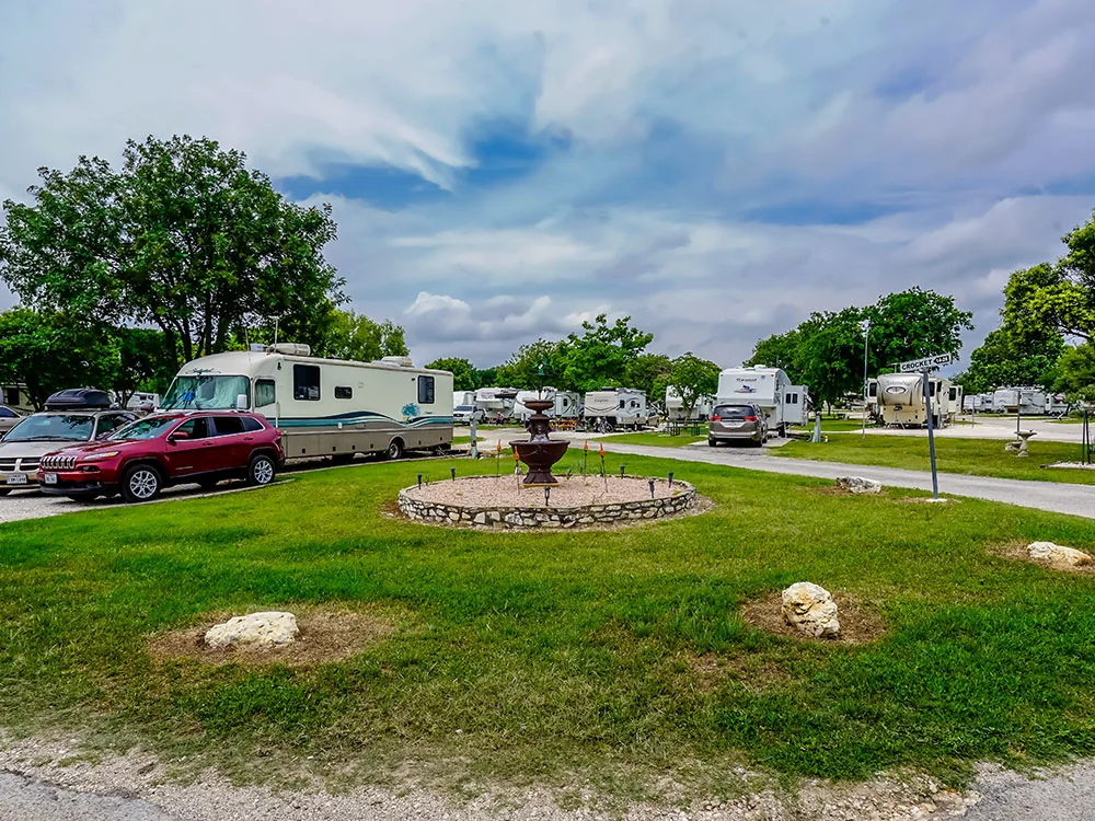 Alamo Fiesta RV Resort sits in Texas Hill Country 30 miles northwest of downtown San Antonio. The park provides 220 full-hookup sites for short-term and long-term stays.