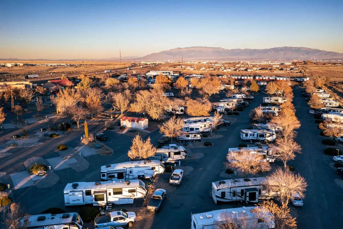 The gated resort operates year-round for overnight travelers and snowbirds. The park sits 5 miles from Historic Old Town. The park sits 8 miles from Balloon Fiesta Park.