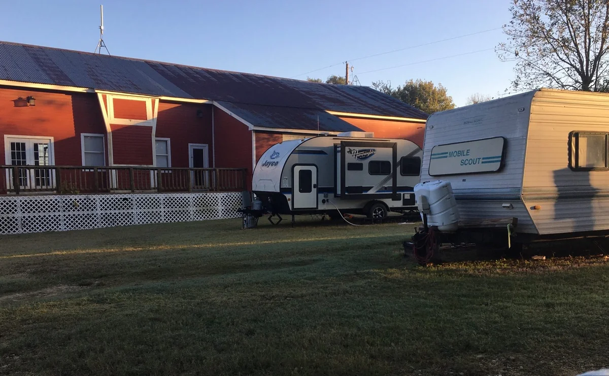 Artesian Park RV Campground sits in Brenham, Texas, 70 miles northwest of Houston. The park features a working 1921-patent merry-go-round and a recreation hall converted from an early 1900s dance hall.