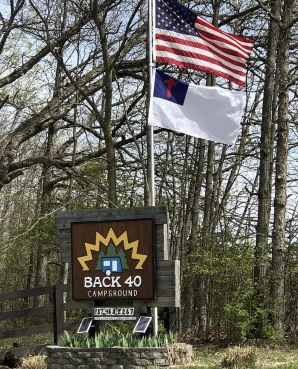 Back 40 Campground provides 30-amp electric and water at every site, a dump station, and a shower house. The lodge and recreation building includes a general store. Outdoor amenities include a dog run, playground, two ponds (one for swimming and one for fishing), hiking trails, a basketball court, volleyball court, climbing wall, gaga pit, swings, and slides.