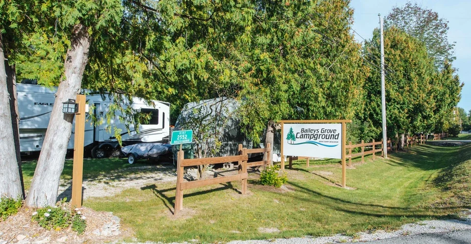 Baileys Grove Travel Park operates 40 RV sites with full hookups in a wooded setting. The park sits 1.5 miles from Baileys Harbor and 80 miles northeast of Green Bay.