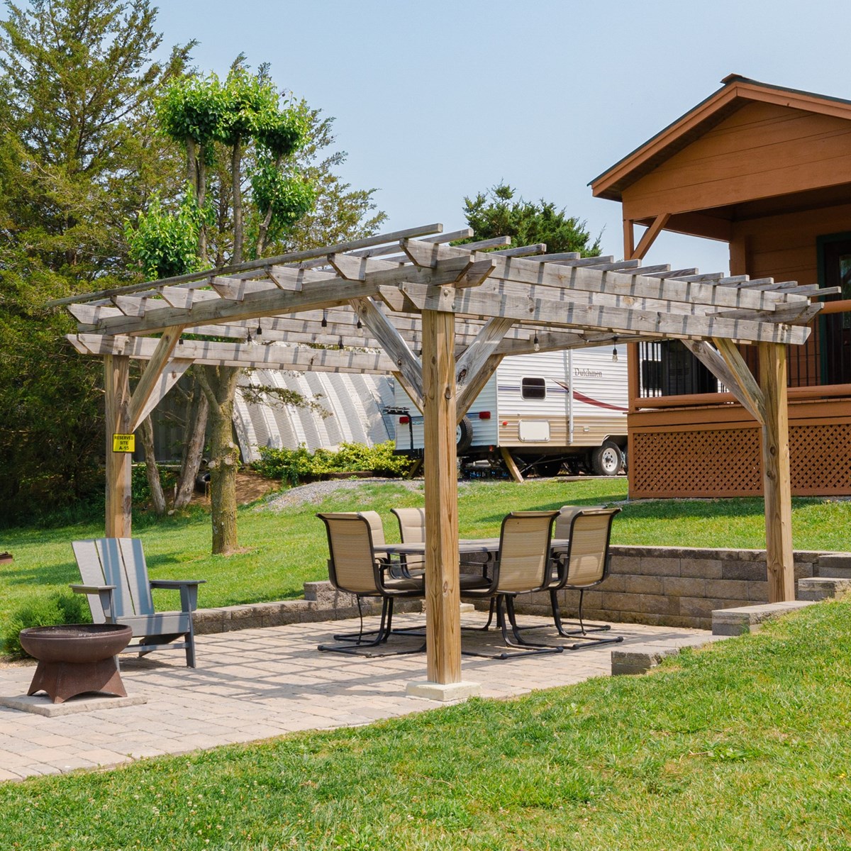 A driving range offers on-site golf practice. A gem mining sluice lets guests pan for treasures. Two spring-fed ponds support catch-and-release fishing.