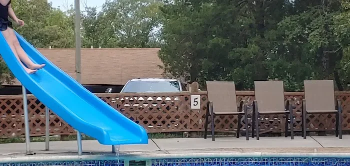 The resort features a swimming pool with a water slide, a basketball court, a game room, and a shower and bath house. The common area provides space for family games.