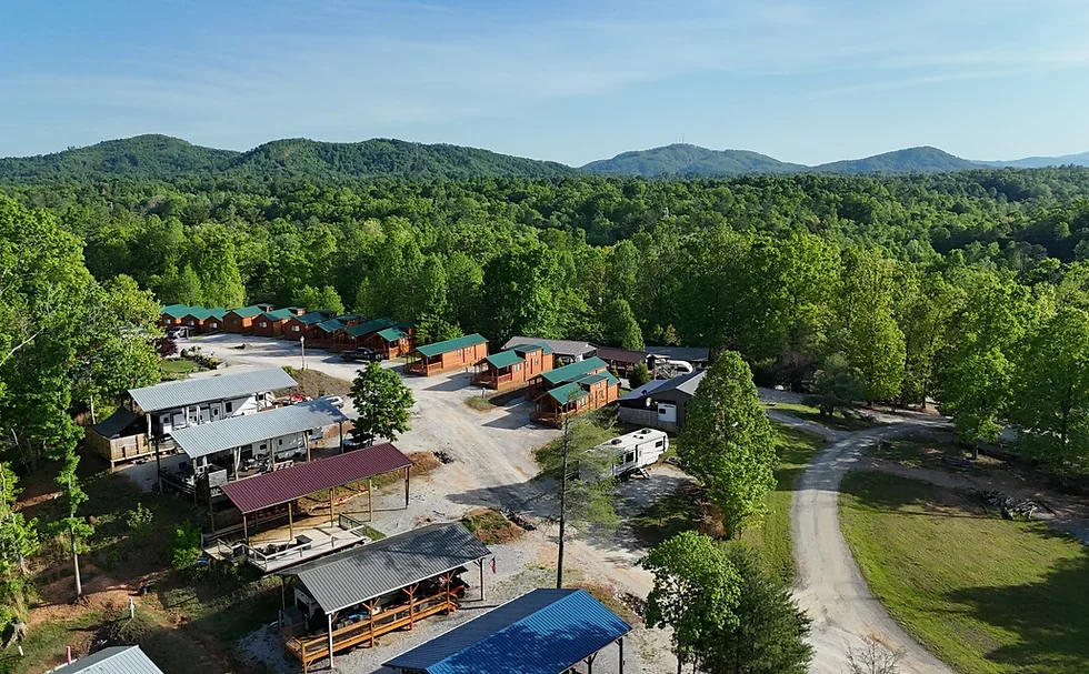 Barefoot Landing & RV Park sits on Lake James in Marion, North Carolina. This 124-site gated resort features a private cove for boating, kayaking, and fishing.