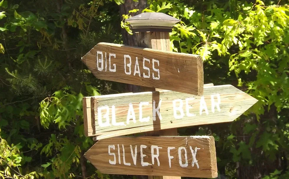 Wildlife sightings occur regularly along the waterfront. The property offers RV sites for seasonal, monthly, and nightly stays. Short-term cabin rentals accommodate visitors without an RV.