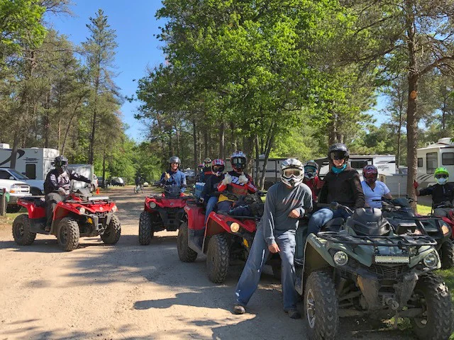 This is a family-friendly, activity-focused campground that hosts groups and events. It operates year-round, catering to summer campers, fall hunters, and winter snowmobile enthusiasts. The atmosphere is communal with a shared community area by the pond.