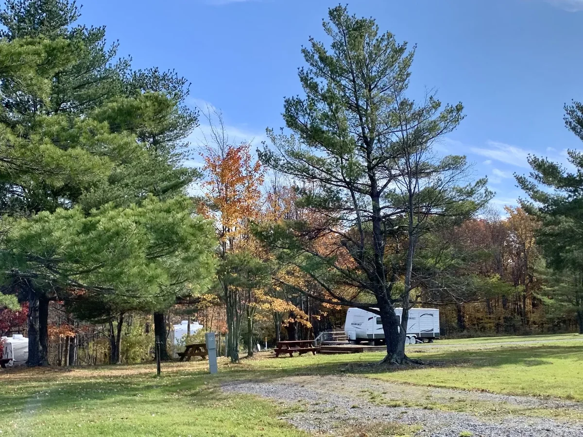 On-site hiking trails connect directly to the campground. The covered pavilion hosts live music events during the season. Canandaigua Lake lies 15 minutes from the campground.