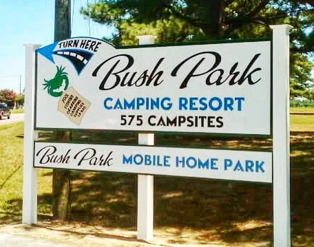 Bush Park Camping Resort operates 563 RV sites with water, electric, and sewer hookups. The resort opens March 28 and closes November 16 each year. The property provides 1.5 miles of waterfront on Bushy Park Creek and the Rappahannock River.