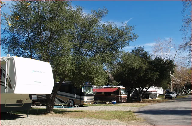 Canyon RV Park borders the Santa Ana River in Anaheim. The campground provides direct access to a natural wilderness park for hiking and biking.