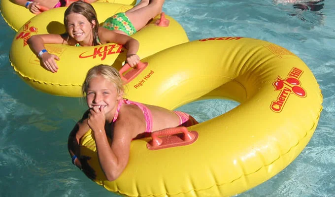 Cherry Hill operates as a 30-acre resort for families. The campground runs seasonally from late May through early September. 115 RV sites surround the water park and adventure park.