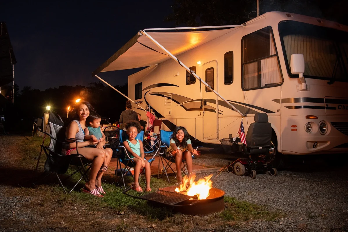 RVers use full-hookup sites. Tent campers, cabin guests, glamping pod guests, and yurt guests all stay on site.