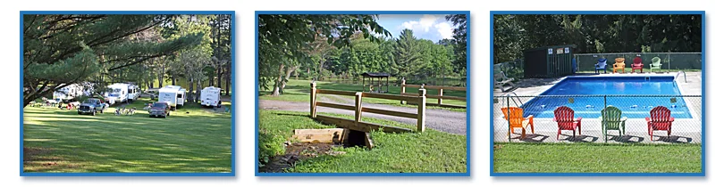 This campground has operated for 48 years with many returning guests each season. The atmosphere is family-oriented with amenities focused on children and group activities. The park is open seasonally from late May to mid-October.