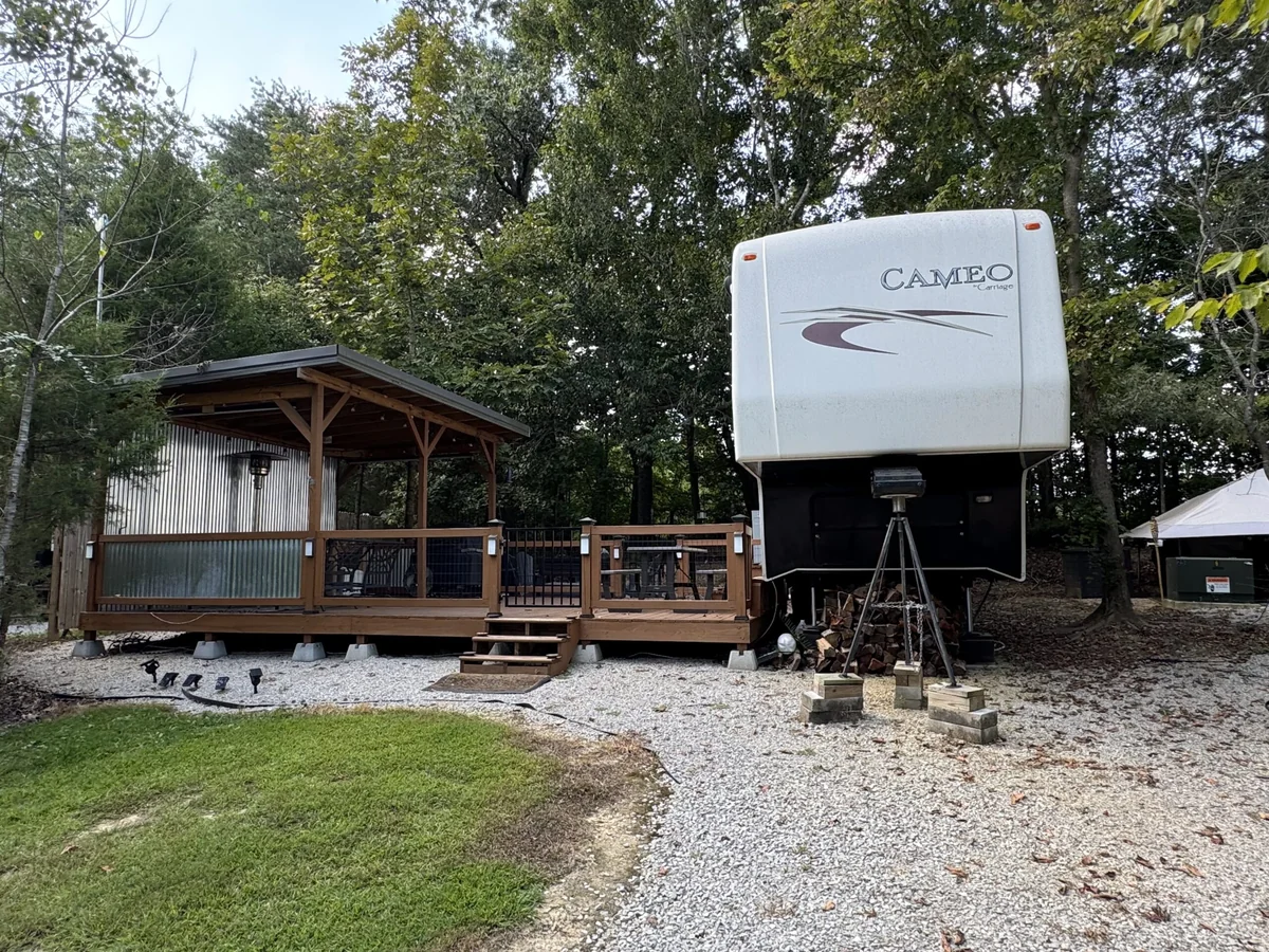 This is a seasonal campground catering to monthly and long-term stays, offering a quiet, laid-back atmosphere in a natural, wooded setting.