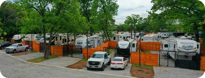 Shady Oaks RV Park sits under mature trees in Dallas, Texas. The park provides full hookups with 20, 30, and 50 amp service. Gated entry and background checks create a secure environment.