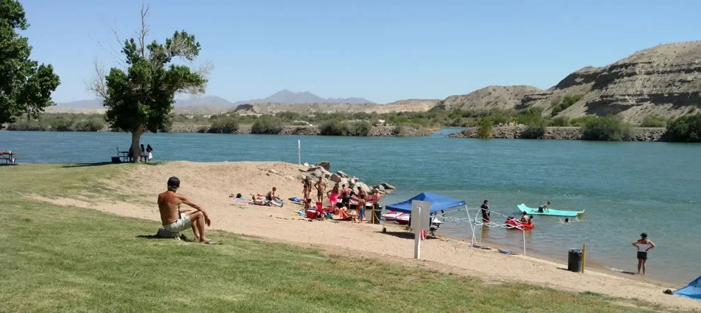 A waterfront day-use beach provides swimming access. The scenic picnic area overlooks the lake. The resort opens every day of the year.