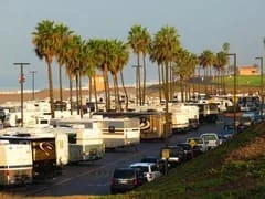 Dockweiler RV Park provides full hookup RV sites with 50 amp service. Every site includes a picnic table and a built-in barbecue. The park sits directly on the sand with direct beach access.