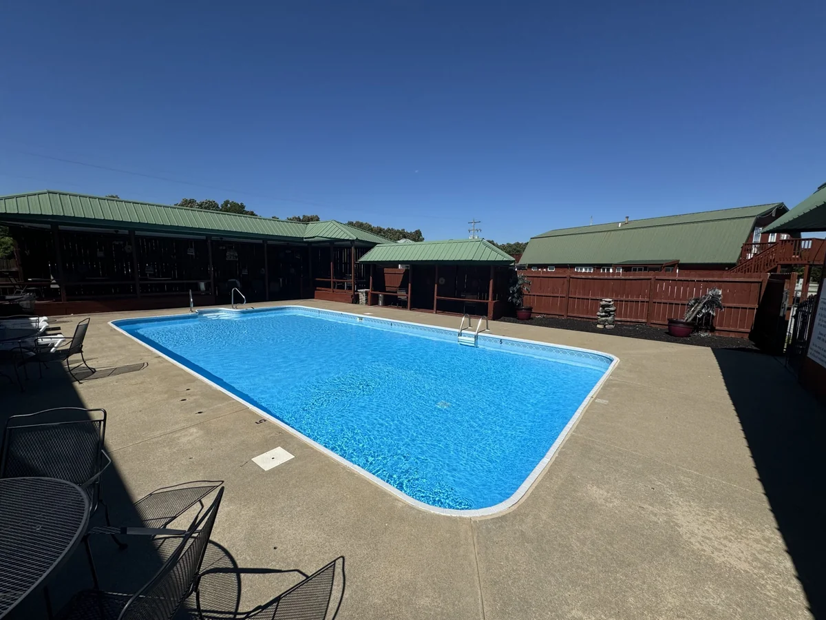 A stocked fishing pond sits on the property for guest use. The park maintains 1.5 miles of walking trails through wooded areas. A seasonal swimming pool operates from Memorial Day through Labor Day.
