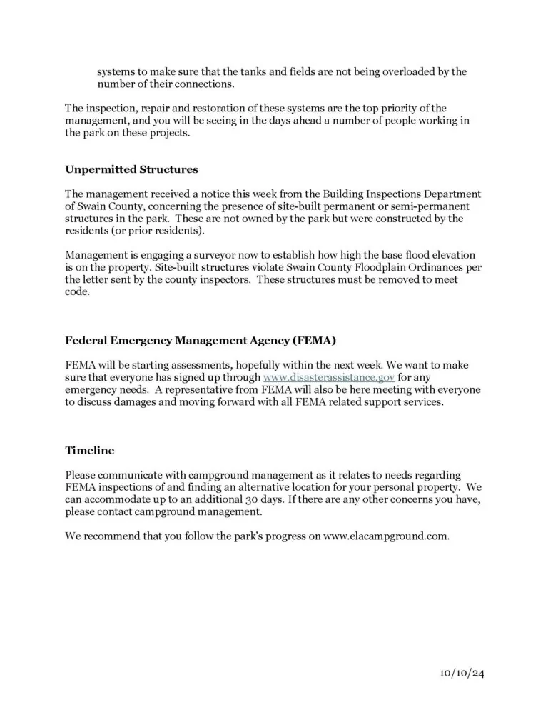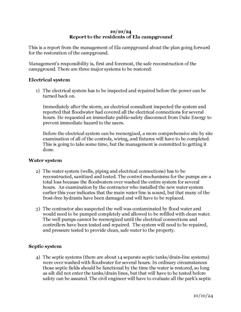 The primary amenity is the on-site Ela Country Store, which sells camp supplies, fishing tackle, and offers local information. Specific store inventory and hours should be confirmed by contacting the campground directly.