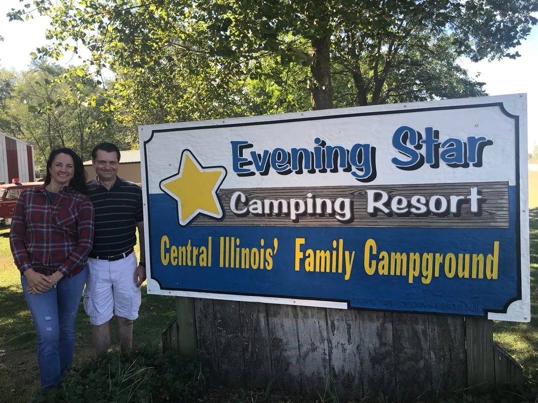 Evening Star Camping Resort sits on 40 wooded acres in Topeka, Illinois, less than an hour from Peoria. The park features a catch-and-release fishing pond and a family-friendly atmosphere.