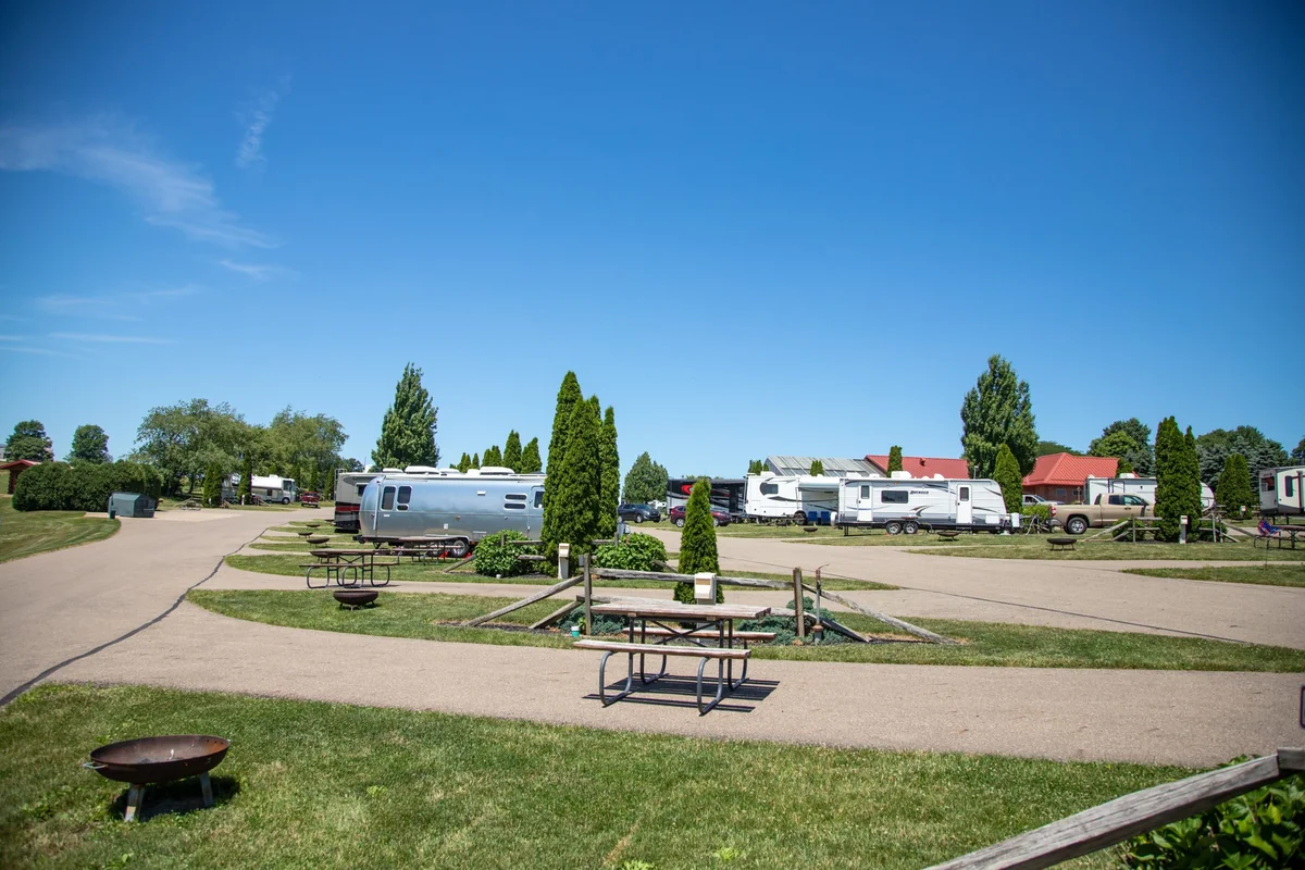 Evergreen Park RV Resort spans 17 acres in Dundee, Ohio. The park provides full-hookup RV sites and cabin rentals. Every site offers panoramic views of the surrounding hills.