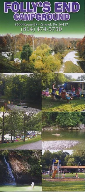 Folly's End Campground sits 100 feet down in the Elk Creek gorge. Elk Creek is Pennsylvania's largest Lake Erie tributary. The campground features two waterfalls on its property.