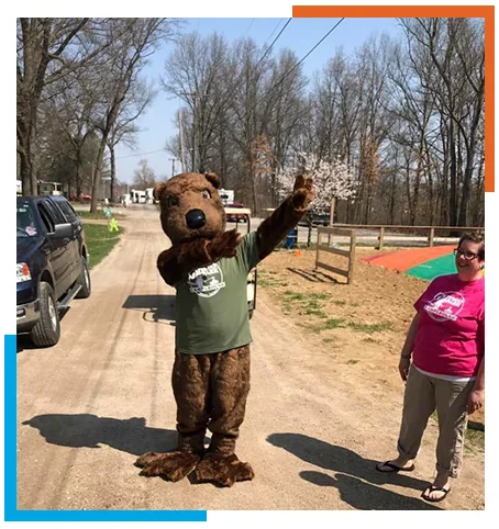 Ninety-nine full-hookup RV sites offer water, sewer, and 30/50-amp electrical service. Four cabins and rental campers accommodate guests without an RV. The Jumping Pillow, gaga ball, volleyball, and playground provide additional activities.