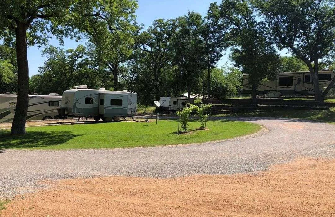 Gone Fishing RV Park places guests 1500 feet from Lake Texoma. The park offers 34 full-hookup sites with 30/50 amp electric. Each site accommodates RVs up to 50 feet.