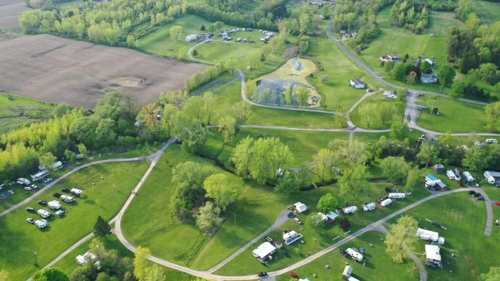 Hejamada Campground sits on 82 acres in Port Byron, New York, 35 minutes west of Syracuse. The park operates as a seasonal destination from May 1 through October 15.