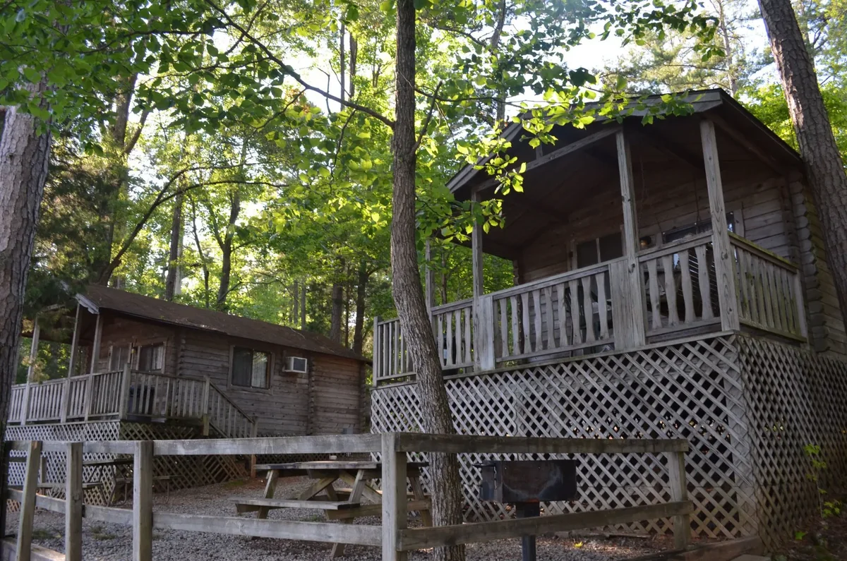Pontoon boat rentals give guests direct lake access. Private boat slip rentals accommodate personal watercraft. Anglers fish for largemouth bass, catfish, and crappie.