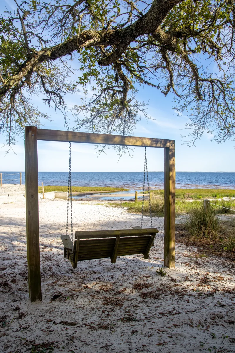 The park sits between Highway 98 and the beach in Lanark Village. The park is 4 miles east of downtown Carrabelle. The park focuses on quiet waterfront relaxation without a pool or playground.