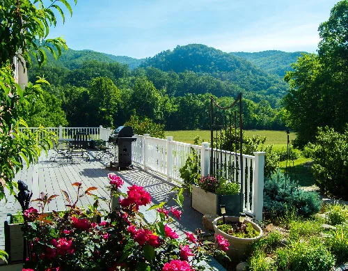 Hot Springs Campground sits on 100 acres along the French Broad River and Spring Creek in Hot Springs, North Carolina. The property features natural mineral spring water piped to private outdoor jetted tubs.