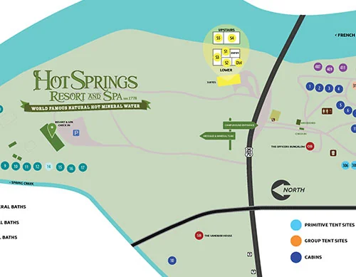 The resort accommodates short-term vacationers, Appalachian Trail hikers, and spa visitors. The atmosphere is relaxed and nature-focused, with wooded sites and river access. The property operates year-round, with seasonal availability for showers and certain amenities.