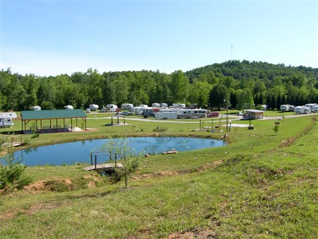 The lake holds stocked fish for fishing and allows boating. A playground provides recreation for children. The campground sits near the Creation Museum and the Cincinnati Zoo.