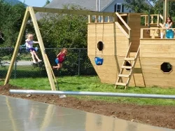 The campground is family-focused with a mix of seasonal and overnight guests. Organized activities foster a community atmosphere. The property is not gated and has a relaxed, wooded setting.