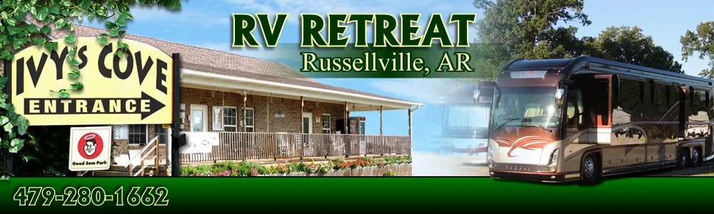 Ivy's Cove RV Retreat sits off I-40 Exit 84 in Russellville, Arkansas. The park offers a secure, gated environment with private individual bathrooms and showers.