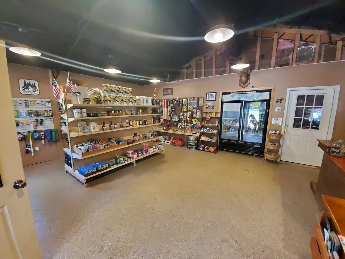 Jenny's Creek Campground provides 45 large shaded RV and tent sites with full hookups. The campground operates year-round for families. The property includes a stocked fishing pond for catch-and-release fishing.