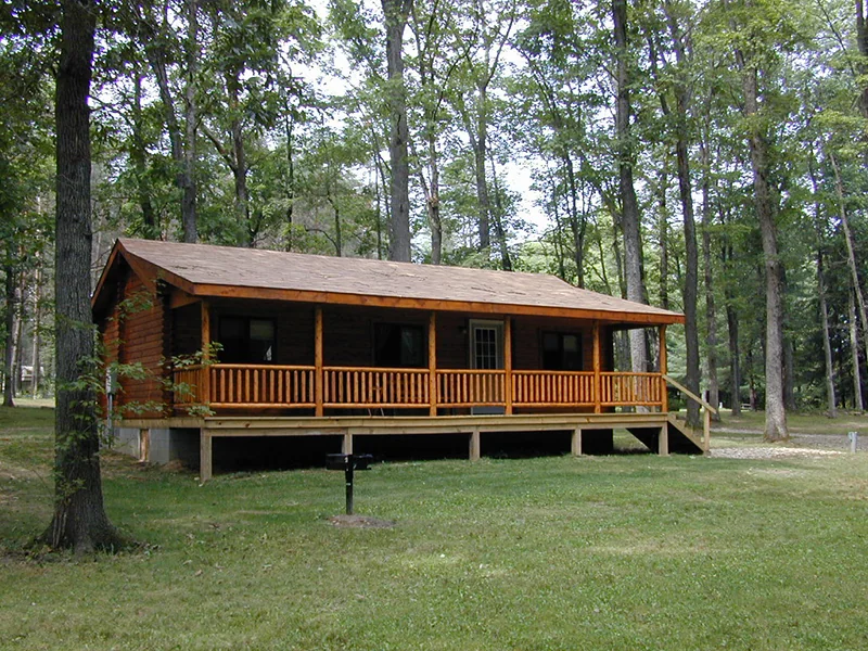 Kalyumet Campground sits inside Cook Forest State Park, 90 miles north of Pittsburgh. This gated family resort offers RV sites, cabins, and motel rooms for year-round stays.