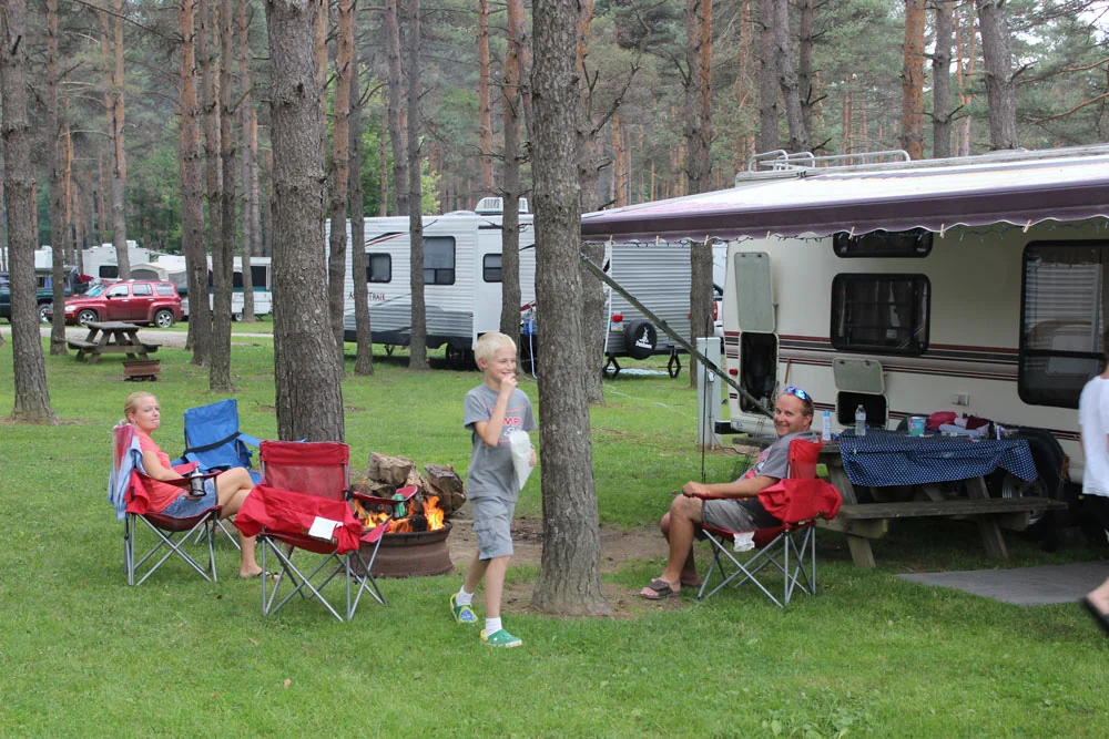 All RV sites include 30 or 50 amp service. Every site has cable TV and free WiFi. The property provides full hook-ups, water, and electric tent sites.
