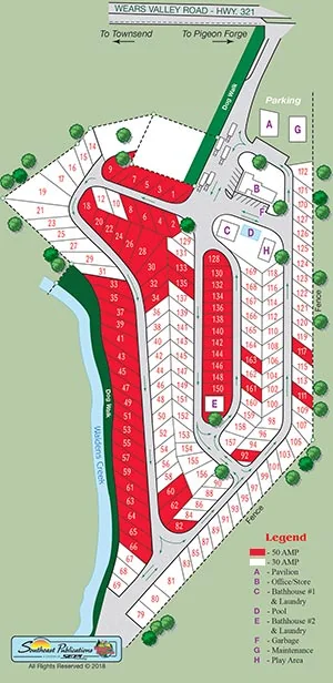King's Holly Haven RV Park is a family-oriented, year-round RV resort catering to travelers visiting the Pigeon Forge and Smoky Mountains area. The park's layout along Waldens Creek provides a wooded, creekside setting.