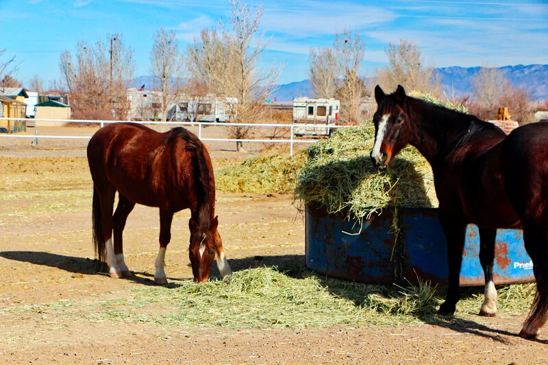 Kiva RV Park & Horse Motel sits in Bosque, New Mexico, 30 miles south of Albuquerque. The property combines full-hookup RV sites with a horse motel for traveling equestrians.