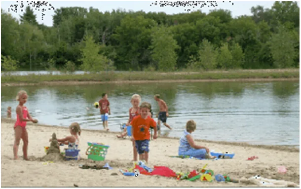 The campground sits on the shores of Krystal Lake. Guests fish and swim directly from the property. A heated swimming pool offers an alternative swimming option.