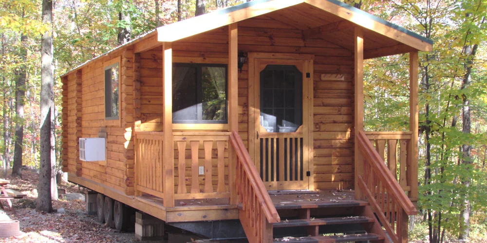 Kymer's Campground operates from May through October. The park offers cabin rentals and campsites for RVs and tents. The property features an Olympic-size swimming pool.