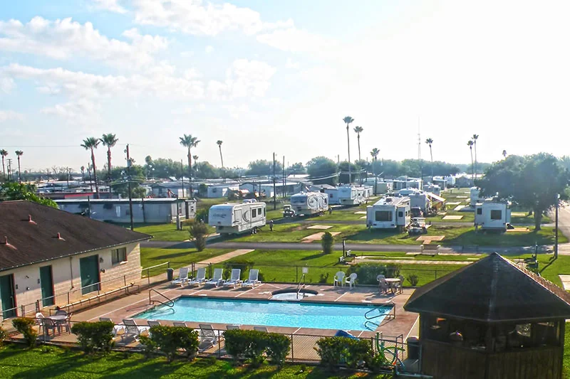 The park is in La Feria, Texas, with retail and dining options along Expressway 83. Harlingen Medical Center is 6 miles away. The park is 20 miles from Brownsville and 30 miles from South Padre Island beaches.