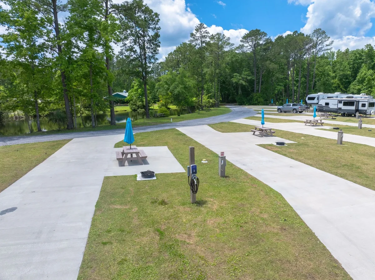 The campground places guests 20 minutes from downtown Charleston. Fort Sumter, Folly Beach, and historic plantations sit within a 20-minute drive. The area provides multiple weeks of exploration through attractions like the City Market and Charleston Aquarium.