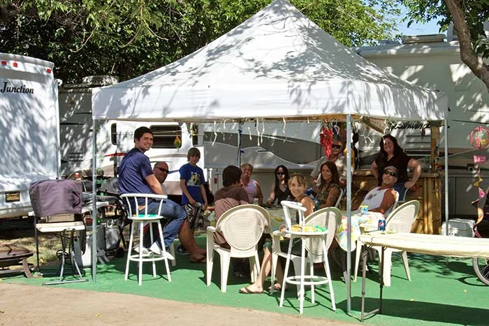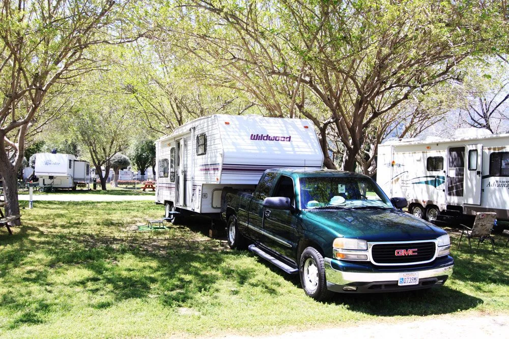 Book online via the park website or call (951) 678-1300. Check-in begins at 2:00 PM and check-out is by 11:00 AM. Quiet hours are from 10:00 PM to 7:00 AM. The resort allows a maximum of two vehicles per site, reduced to one vehicle during holiday periods. Additional vehicles cost $15 nightly, $35 weekly, or $30 monthly.