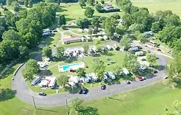 Lazy Village Campground operates from April 1 through October 31. The park sits on wooded grounds bordering Shawnee State Forest. The property occupies the historic Portsmouth Speedway site from 1952 to 1962.