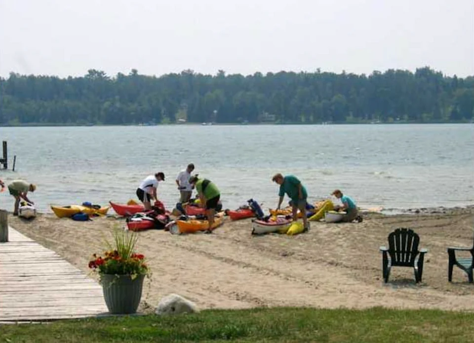Amenities include a swimming beach, kayaking access, and a boat dock available for daily, weekly, or monthly rental.