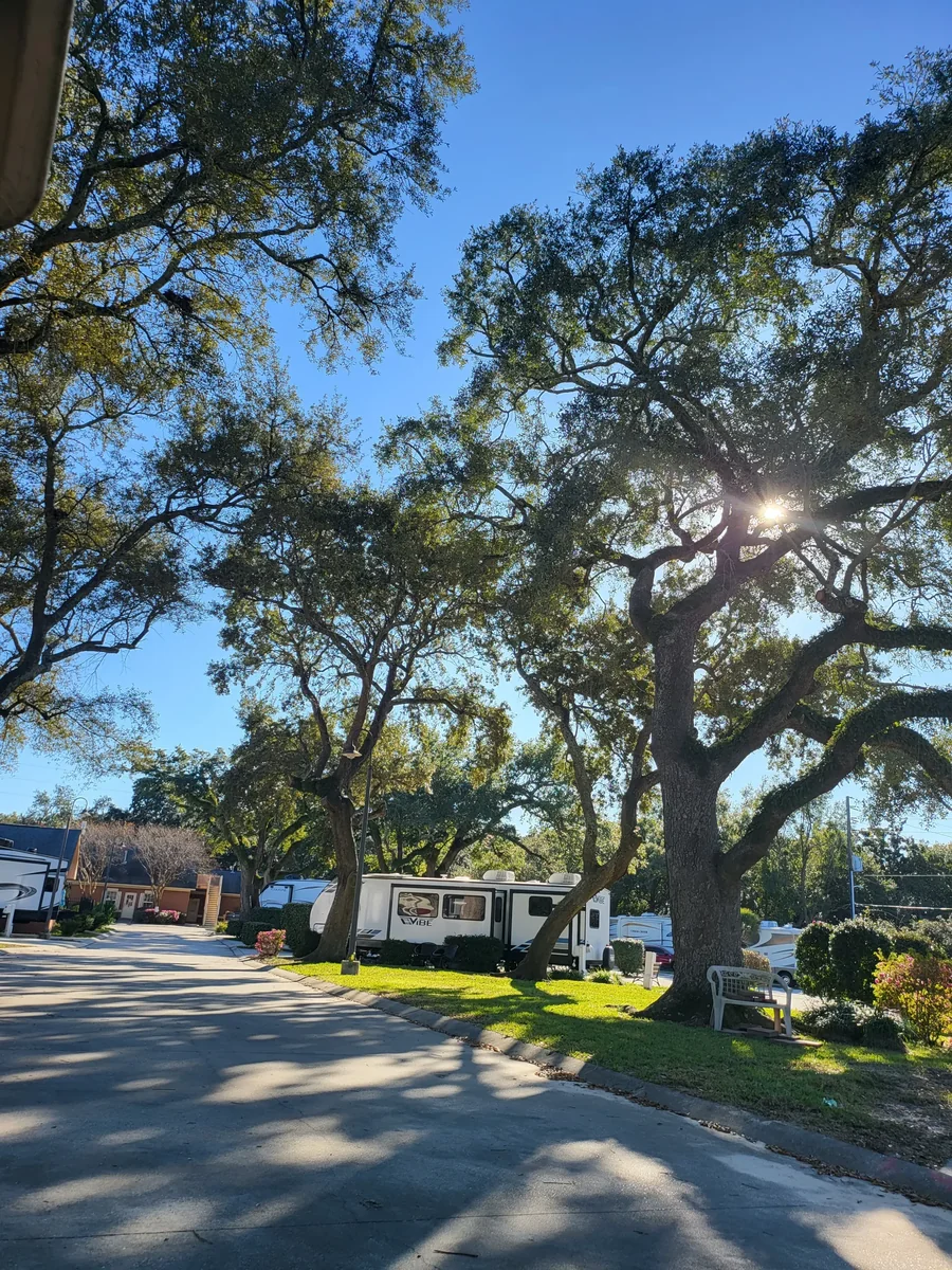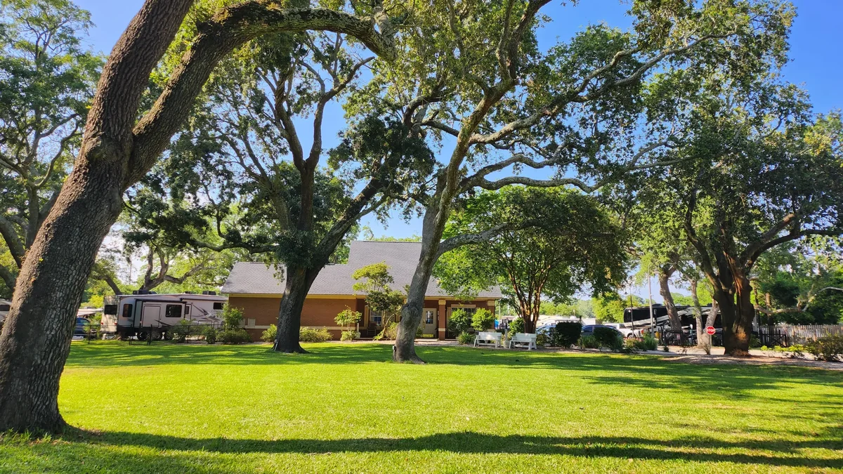 Majestic Oaks RV Resort sits under a canopy of mature oak trees in Biloxi, Mississippi. The park offers 100 luxury RV sites with concrete pads.